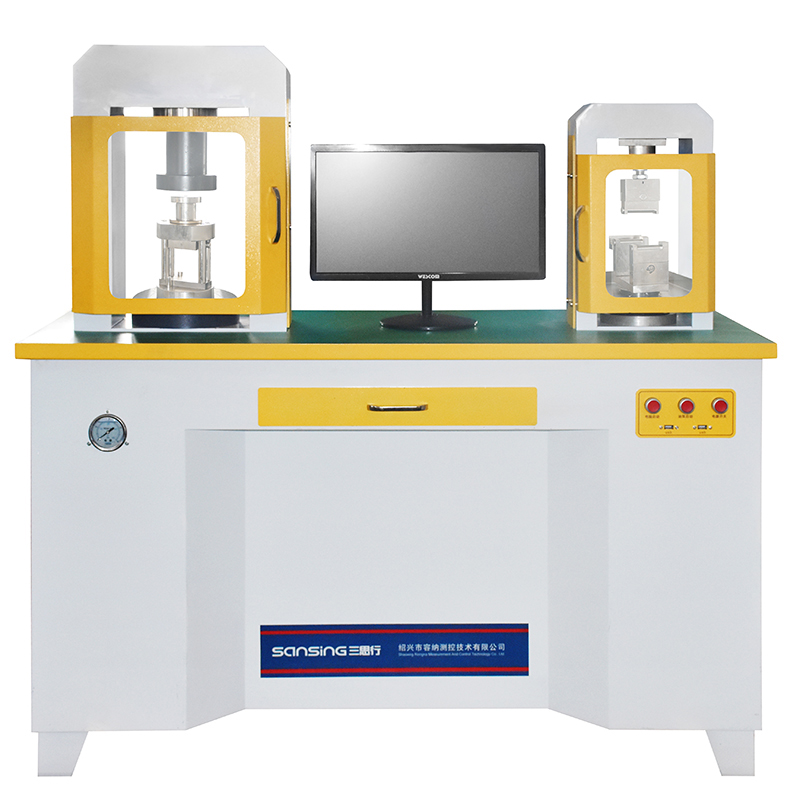 试验机由油源、主机架、液压控制系统,传感器及PC机控制测力系统控制器组成。抗压部分采用两根立柱与台面板连在一起,工作油缸安放在台面板上。抗折部分也采用两根立柱将上梁与台面板连在一起,抗压传感器安装于上梁底部,工作油缸安放在台面板上,与抗压部分一起构成试验机的主机架。工作油缸与工作活塞是精密偶件,在油缸的内壁上部嵌有复合密封圈来达到密封,这种结构可以使工作油缸与活塞之间的摩擦减少到*低限度,从而保证试验机的精度。采用轴向柱塞高压油泵,由电机通过支架安装在试验机底部,整体安放于油箱上,工作平稳且躁声低。液压集成块上有数字微小流量阀,整体安装于油箱上方。传感器才用压强传感器,安装于油缸底部。PC机控制测力系统安放在主机侧边。